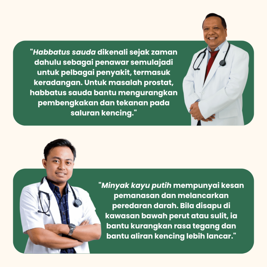 Produk ini sesuai untuk lelaki yang alami masalah kencing tak lawas, lemah tenaga batin & bengkak prostat.