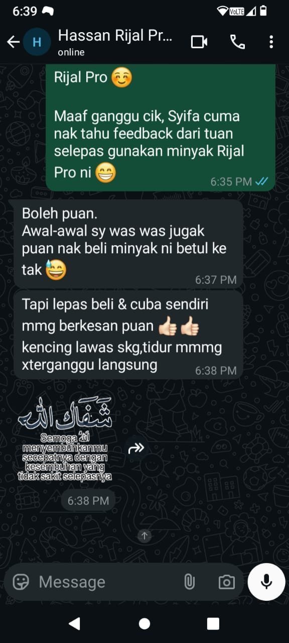 Minyak Herba Rijal Pro hanya untuk kegunaan luaran sahaja.